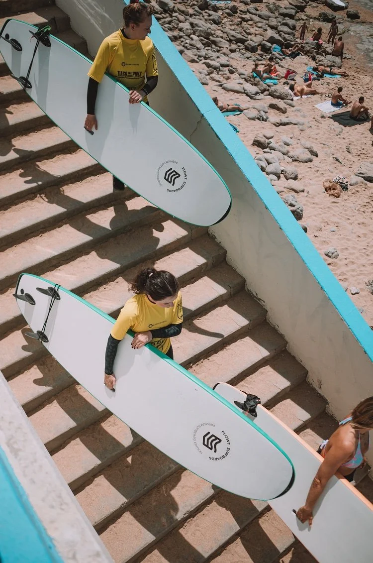 Surf lessons are executed in Matadouro Beach. Tiago βSacaβ Pires the founder of Tiago Pires Surf School is a pro surfer who was the first male Portuguese to qualify for the WSL Elite Tour. Best quality of surfing and teaching with excellent surf coaches and individual approach is guaranteed.